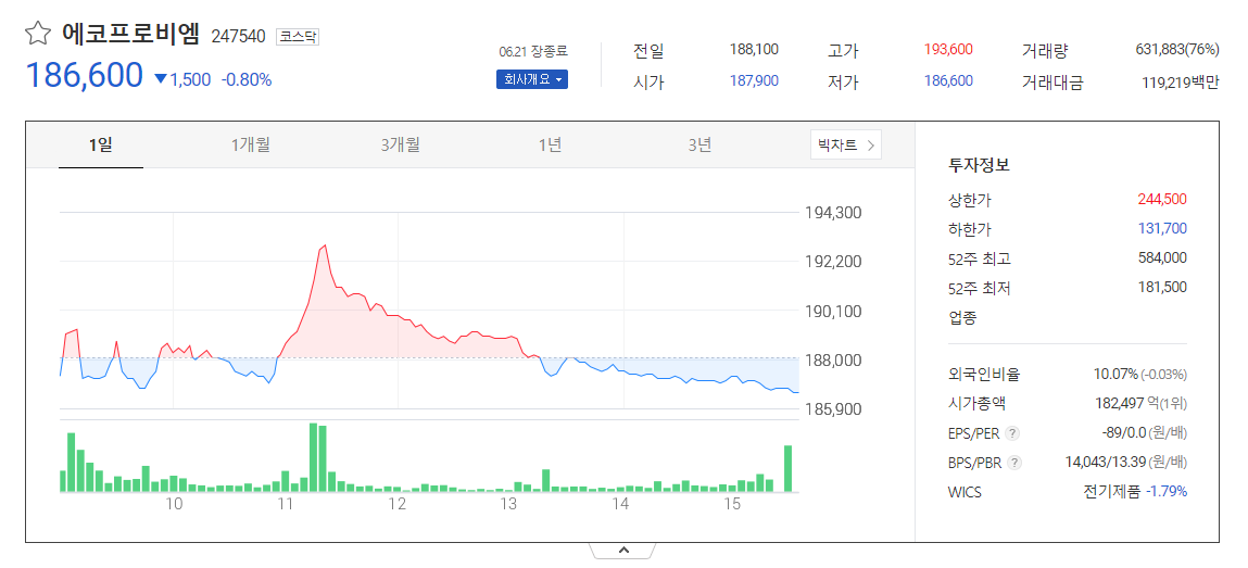 에코프로비엠의 뜨거운 반등을 기대하며 시작하겠습니다.