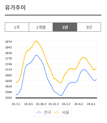 2024년 8월 31일까지 유류세 인하 기간이 연장되었지만, 인하율 축소로 인해 유류세 인상 효과가 나타났습니다.