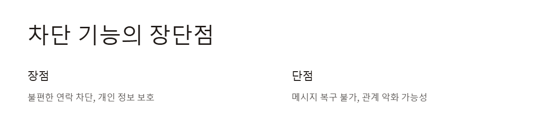 - 차단 상태에서는 상대방이 보낸 메시지를 받을 수 없습니다.