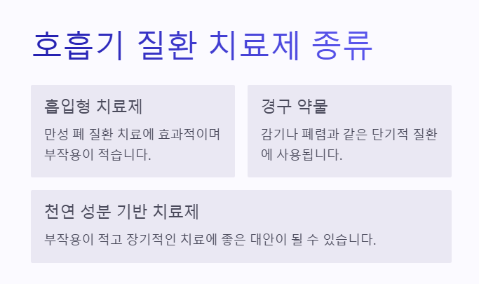 호흡기 질환을 효과적으로 관리하기 위해서는 올바른 치료제를 선택하는 것이 중요합니다. 치료제는 환자의 상태와 증상에 따라 크게 달라질 수 있으며, 주로 아래와 같은 종류가 사용됩니다.