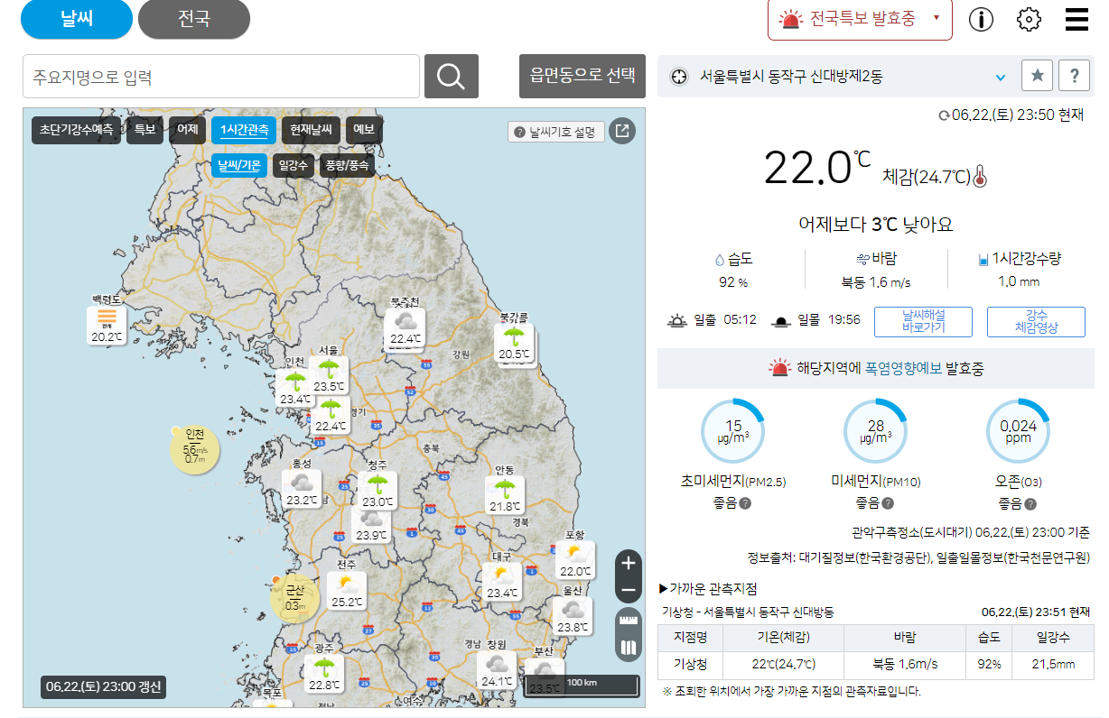 기상청의 실시간 강수량 체크를 수시로 하셔서 장마로 인한 피해가 없도록 꼭 대비하시길 바랍니다.