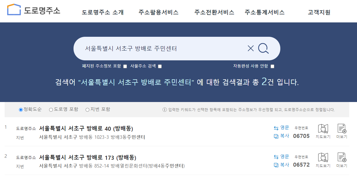 자신의 주소를 적고 검색을 눌러줍니다!!