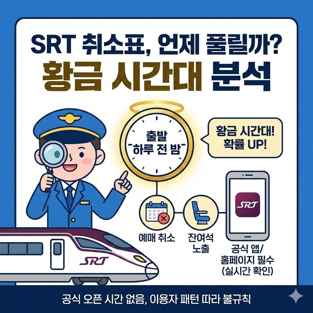 💡 SRT 취소표는 공식적으로 정해진 오픈 시간이 없으며, 이용자 패턴에 따라 불규칙적으로 풀립니다.